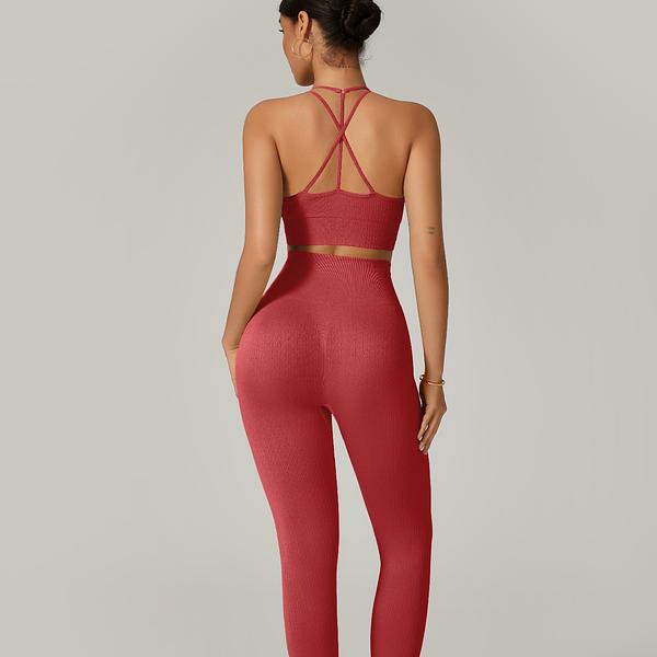 A legging com cintura alta e modelagem empina natural valoriza o corpo, enquanto o top de alça fina traz um visual moderno e delicado, ideal para academia, yoga, pilates ou o dia a dia fitness.