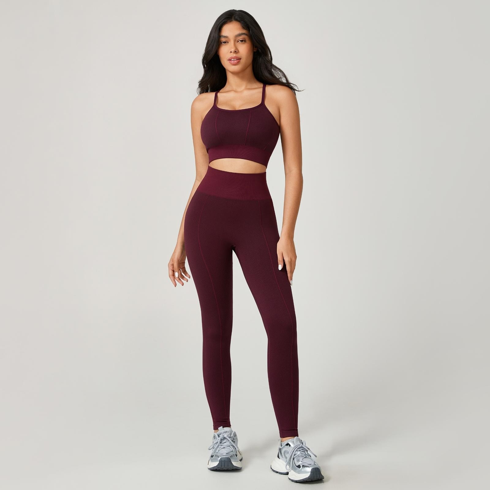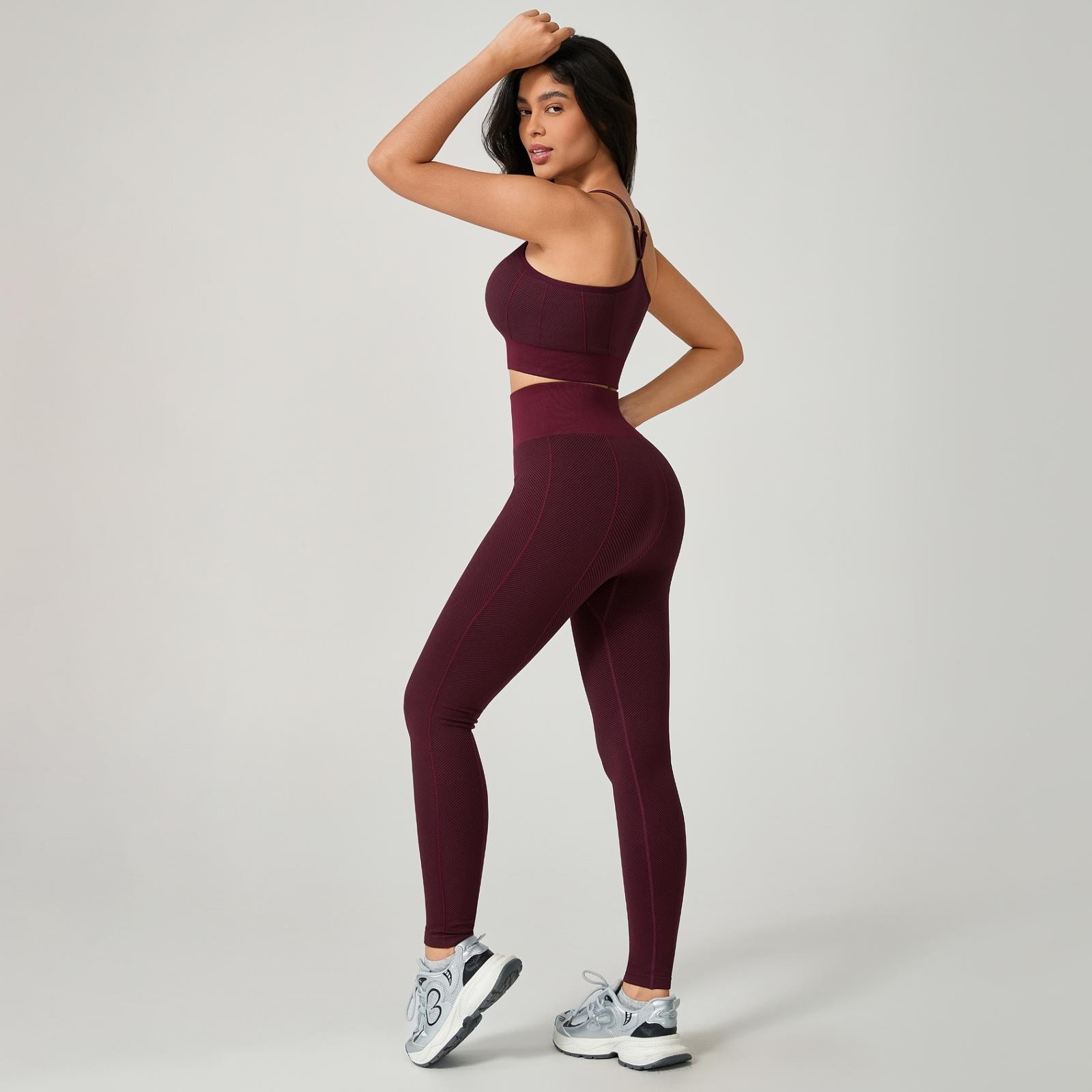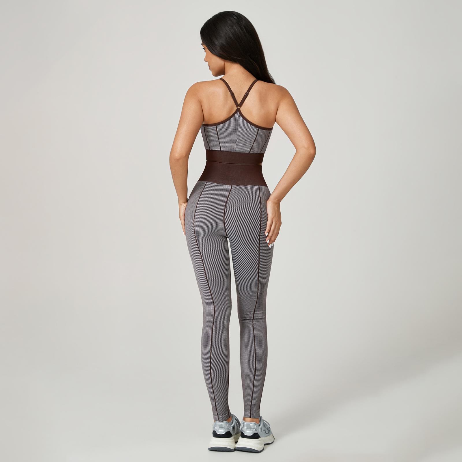 O top de alcinha modelo nadador garante sustentação com um design moderno e delicado, enquanto a calça de cintura alta com costura valoriza as curvas com firmeza e conforto — tudo sem empina, para um visual natural e elegante.