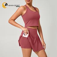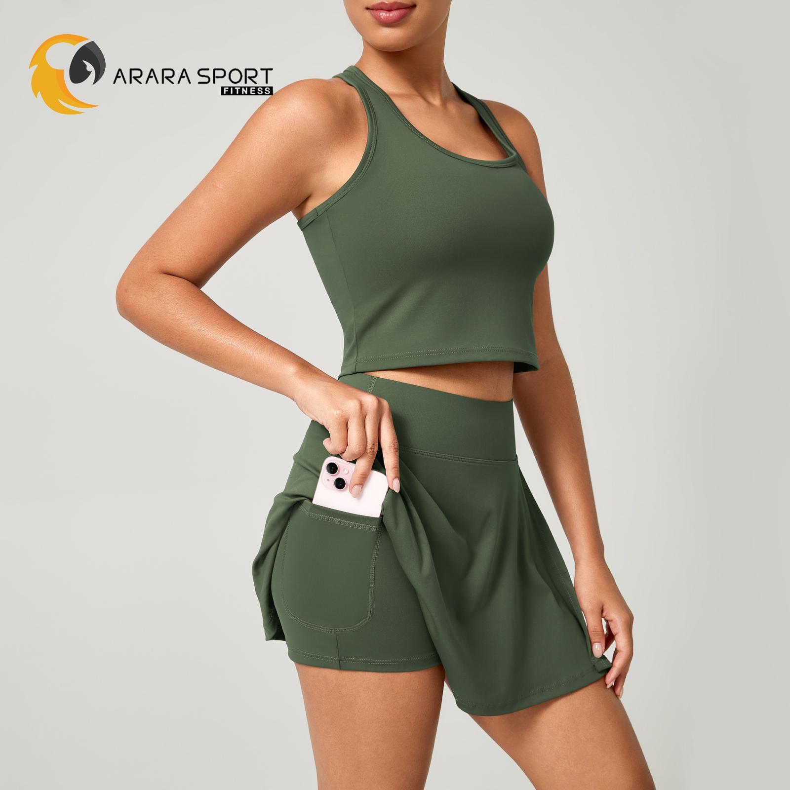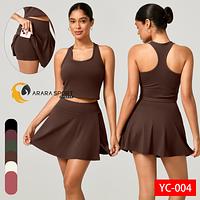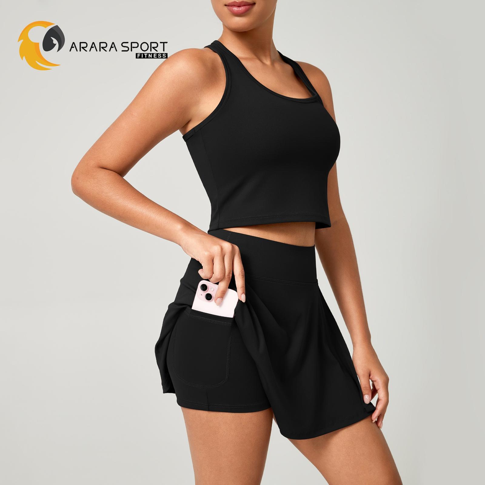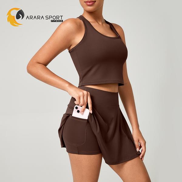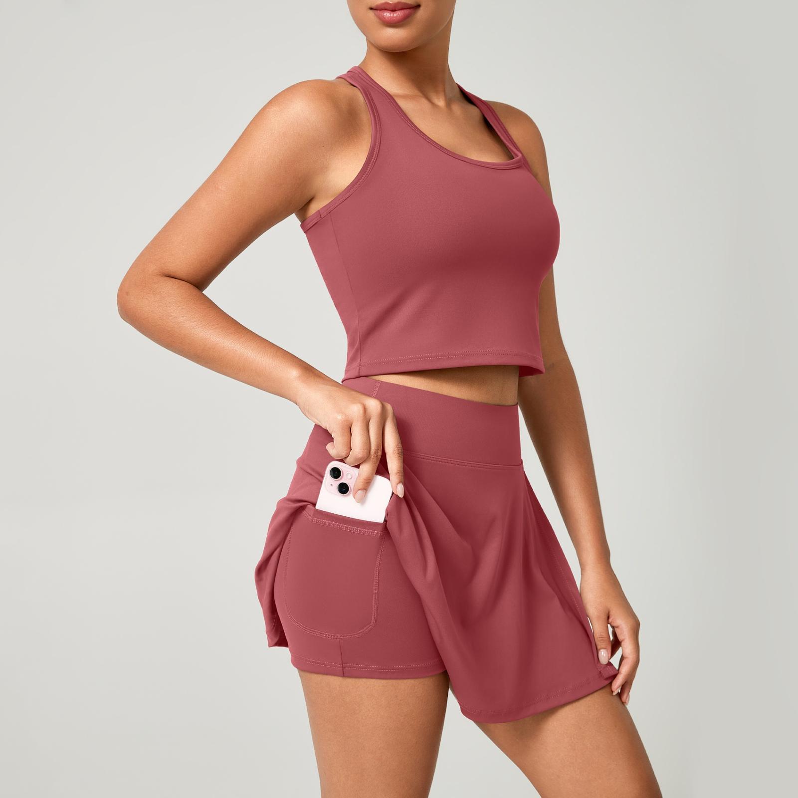 Conjunto Fitness Short Saia + Top Nadador Poliamida Premium com Bolso Interno – Conforto e Estilo