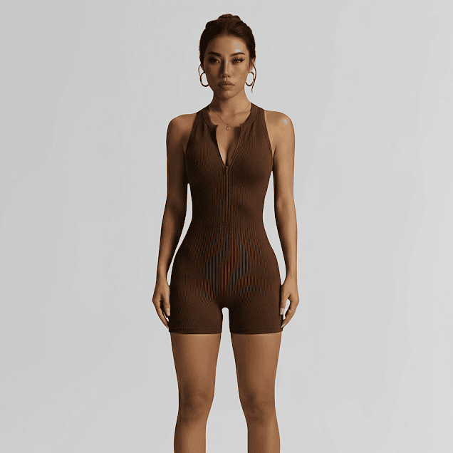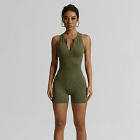 🔥 Macaquinho Fitness com Zíper – Canelado 🔥