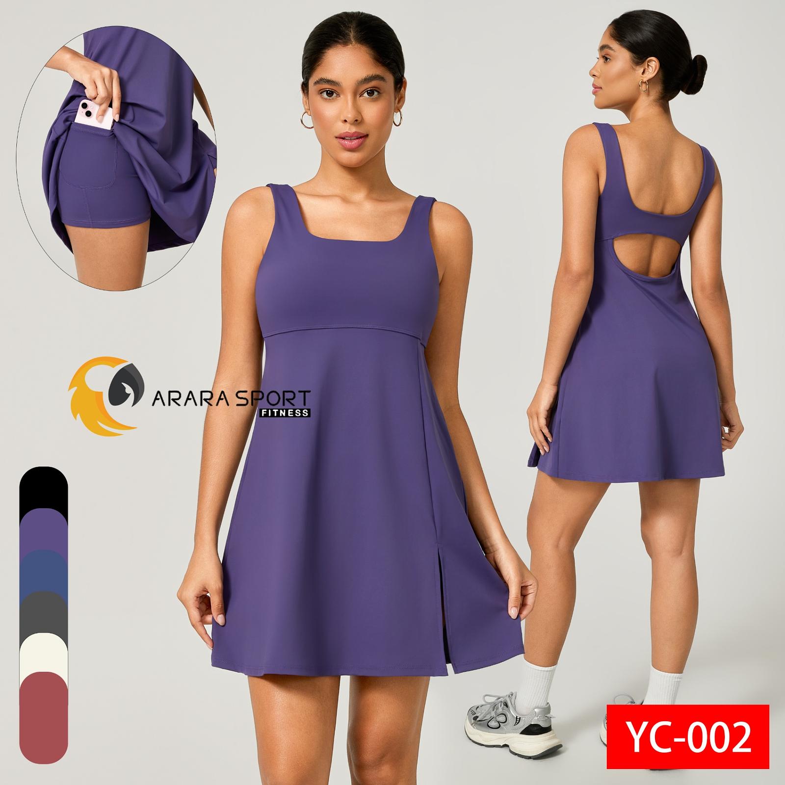 Vestido Fitness Poliamida Premium com Short Interno e Bolso – Decote nas Costas