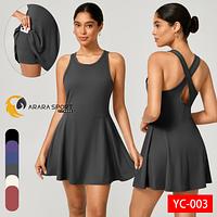 Vestido Poliamida Premium Academia Cruzado nas Costa Com Short e Bolso Interno Fitness