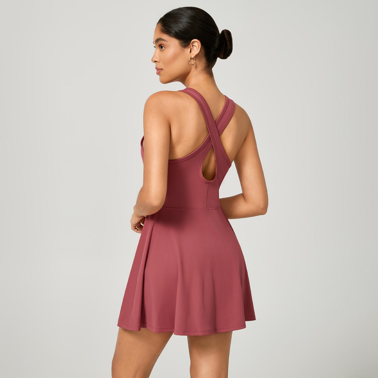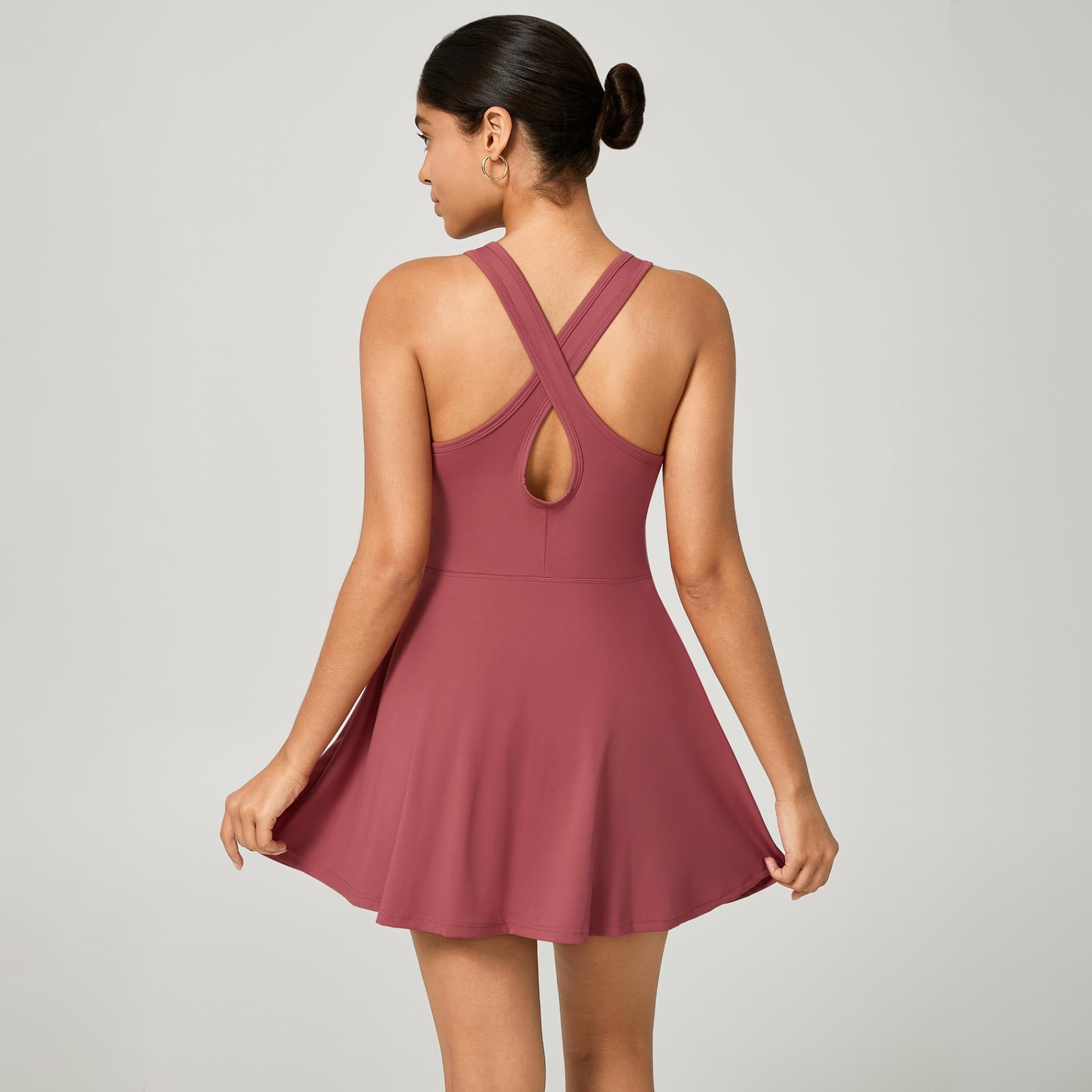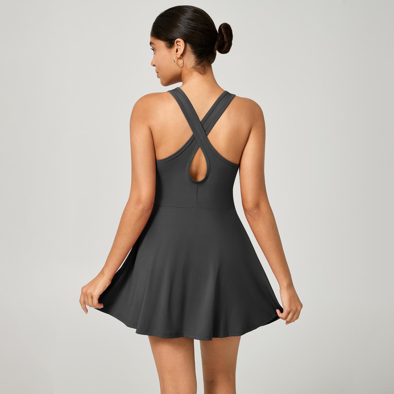 Vestido Fitness Poliamida Premium Cruzado nas Costas com Short Interno e Bolso – Conforto e Estilo